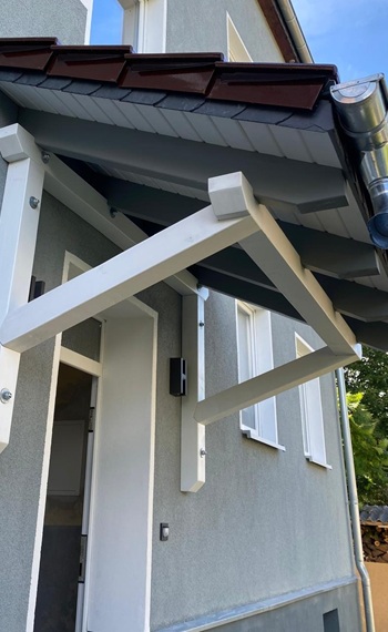 So fügt sich das Vordach harmonisch in den Eingangsbereich ein und erfüllt zuverlässig seinen Zweck.