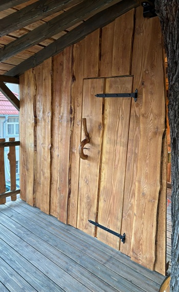Damit das Baumhaus dauerhaft geschützt bleibt, beraten wir Sie gern zu Holzschutz, Pflege und Wartung. Auf Wunsch behandeln wir das Holz mit hochwertigen Öl- und Wachsprodukten, um es vor Witterungseinflüssen zu schützen.