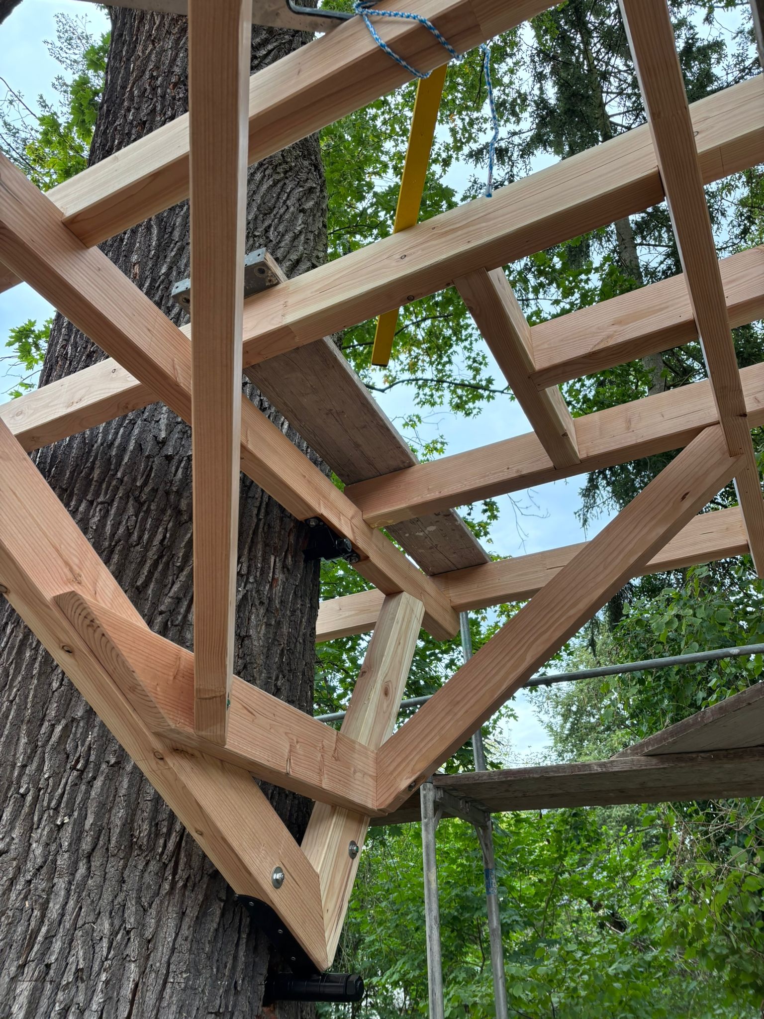 Beim Aufbau legen wir großen Wert auf Sicherheit und Stabilität. Durch unsere handwerkliche Erfahrung im Holzbau achten wir darauf, dass alle Bauteile korrekt montiert und fachgerecht befestigt werden.